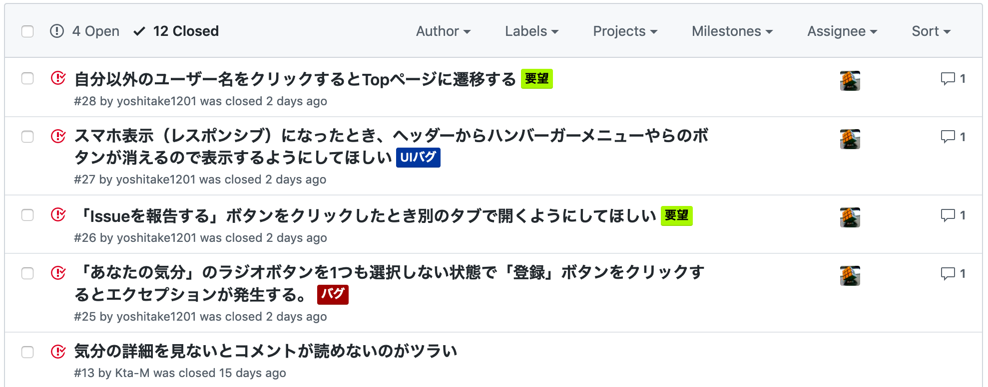 残念ながら自分以外が作ったPRは0件ですが、ISSUEはたくさん上げていただきました(笑)