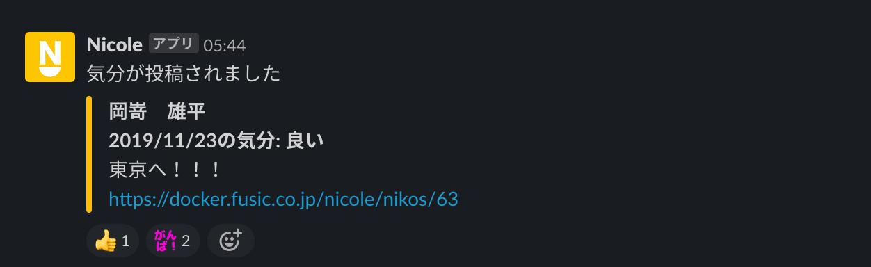 弊社ではSlackはもはやインフラなので、各社員の投稿はSlackにも通知しています。