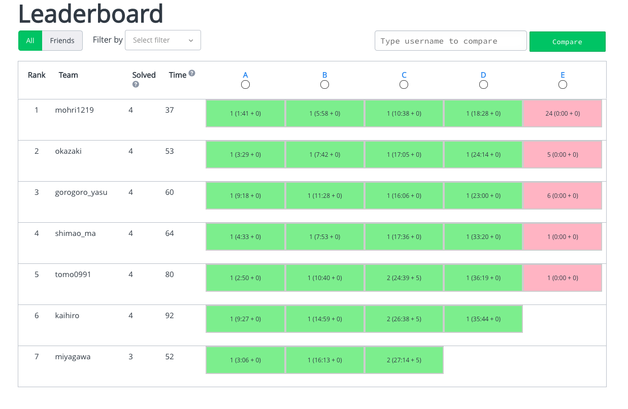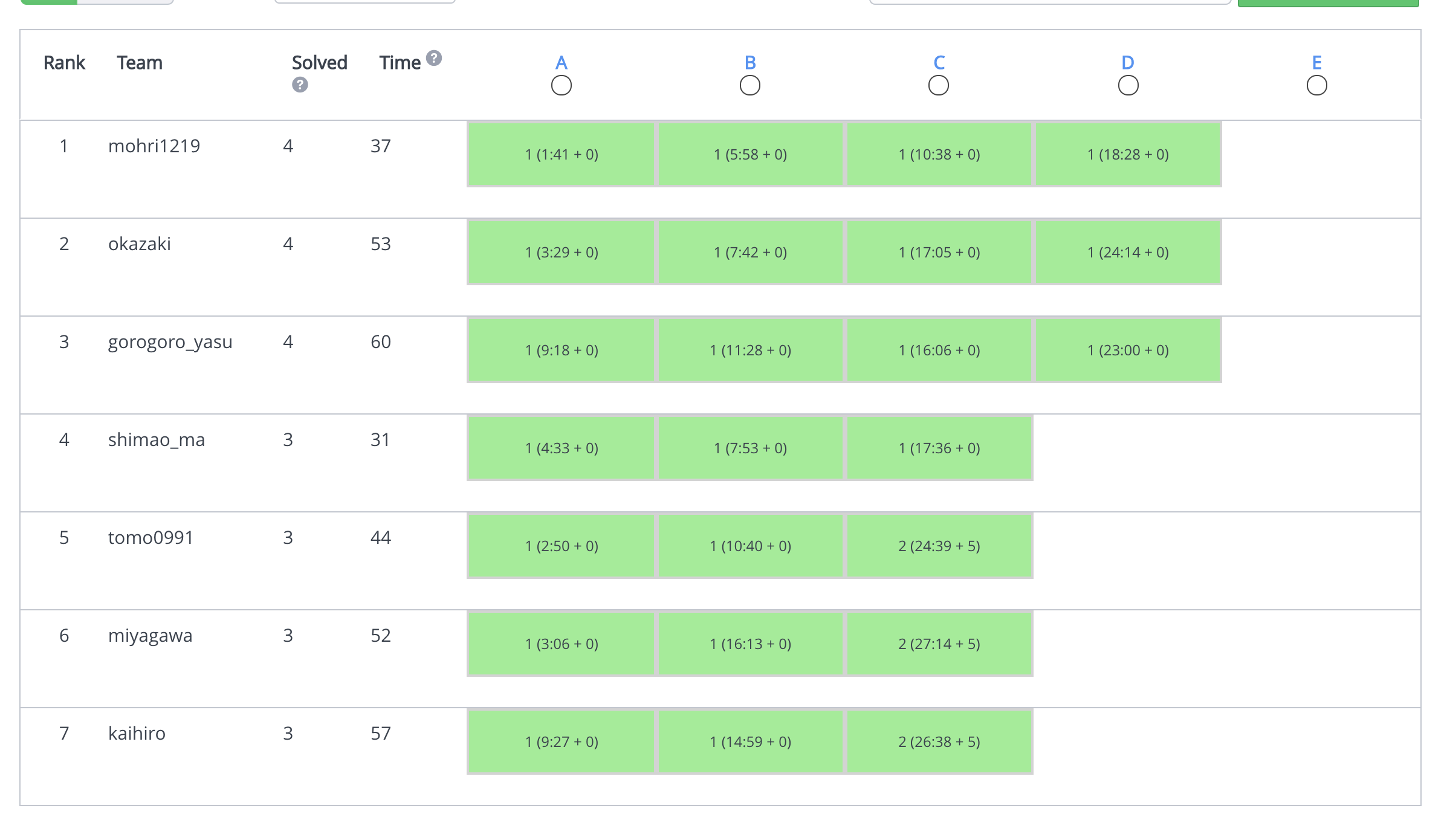 特に速かったのは毛利さん。 20分段階で、4問目までをACし、最終問題へと歩を進めました。