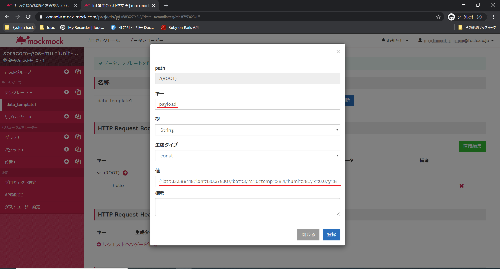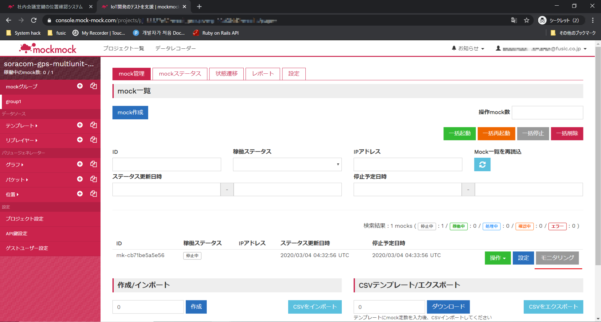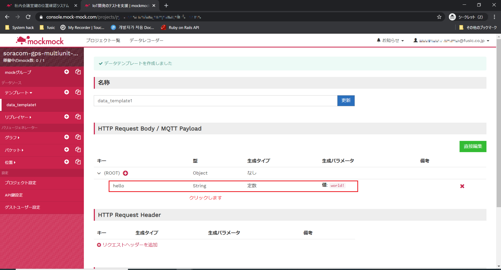 mockmockで仮想デバイスを作成してみます。また、mockmockならSORACOM Funkに送信データ量と送信間隔などを調整しながら、システム全体の動作確認ができます。