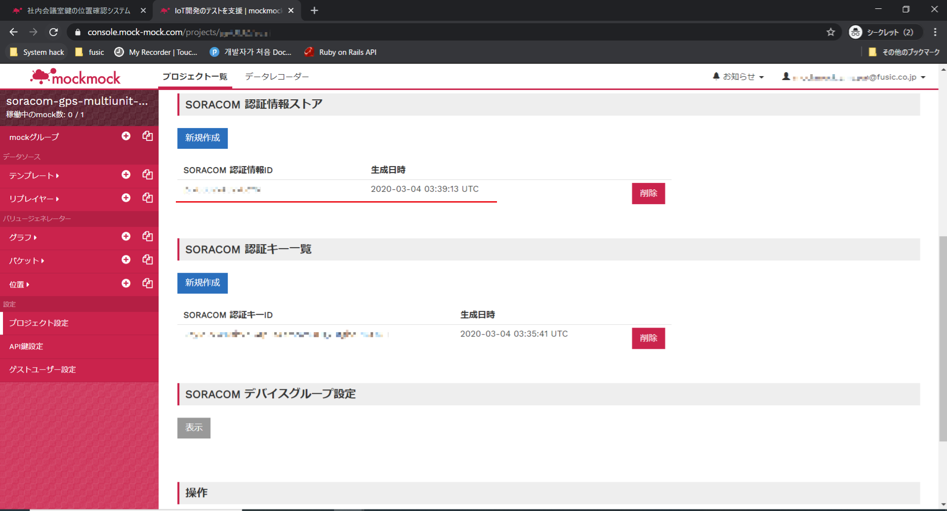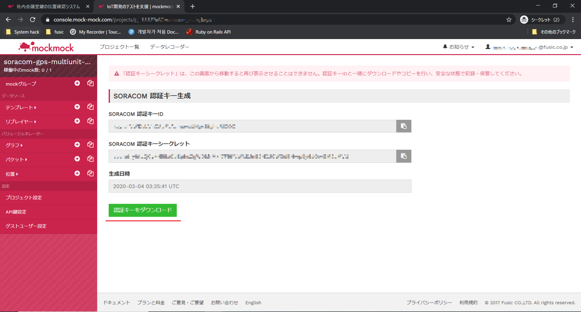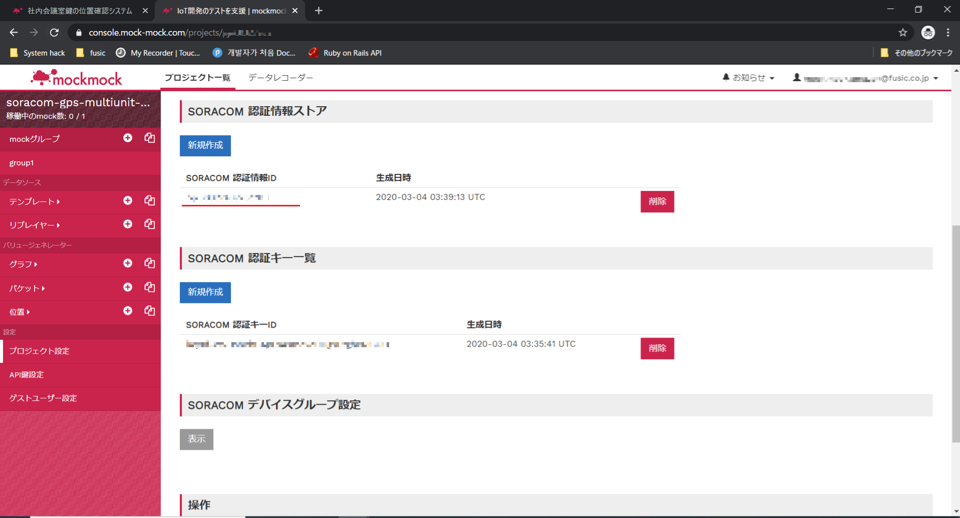SORACOM 認証情報IDはmockmockの画面で確認できます