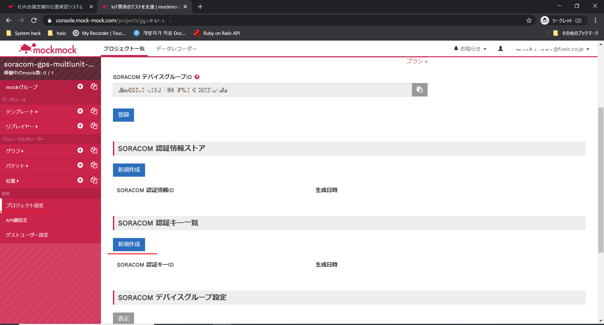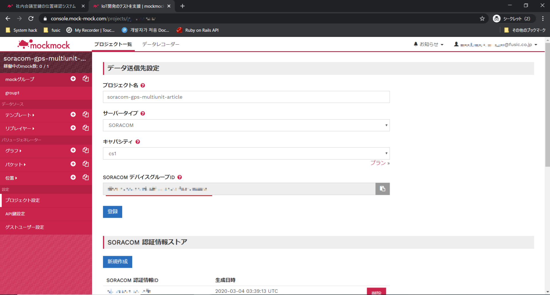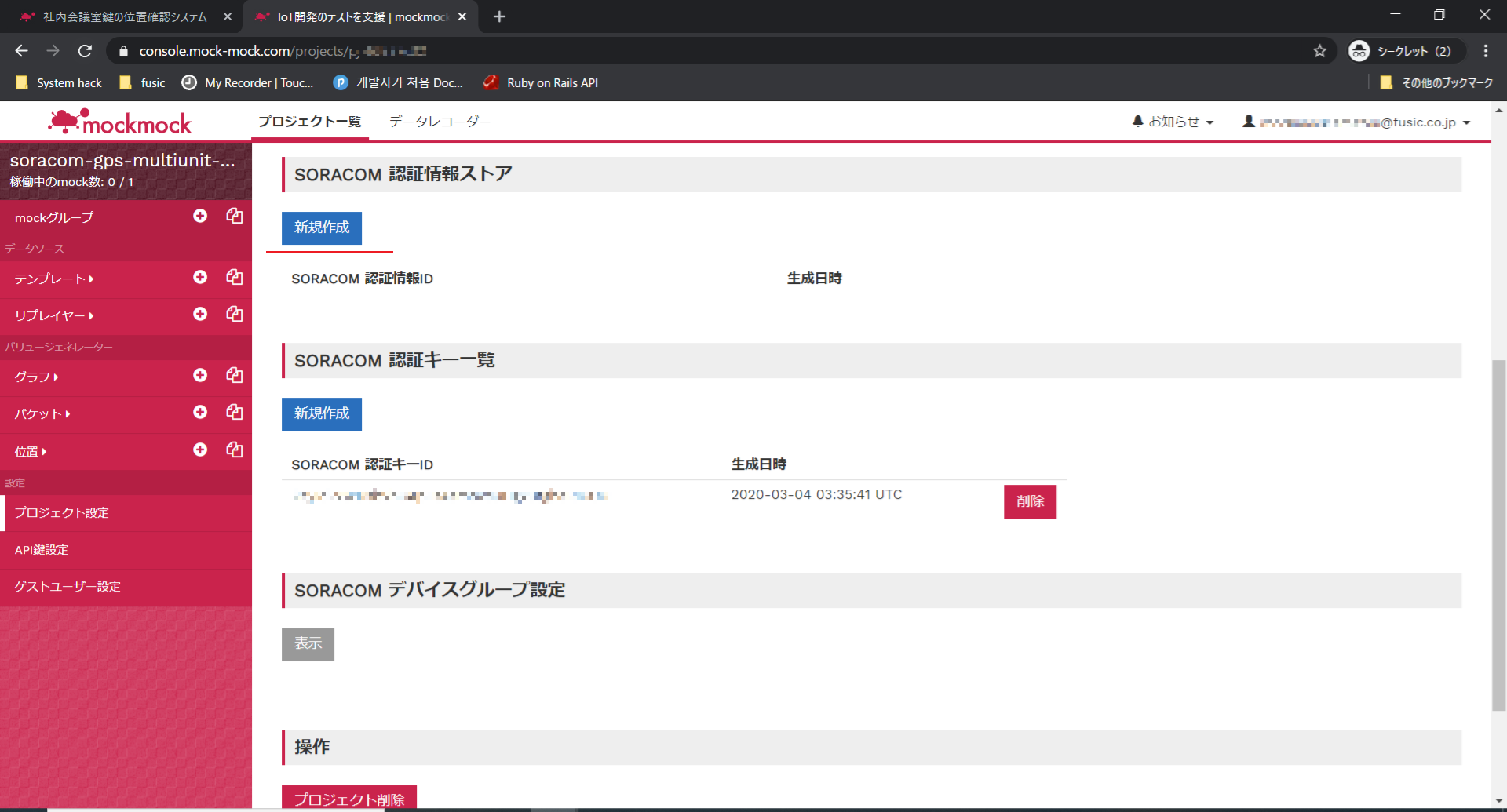 SORACOM 認証情報IDはmockmockの画面で確認できます