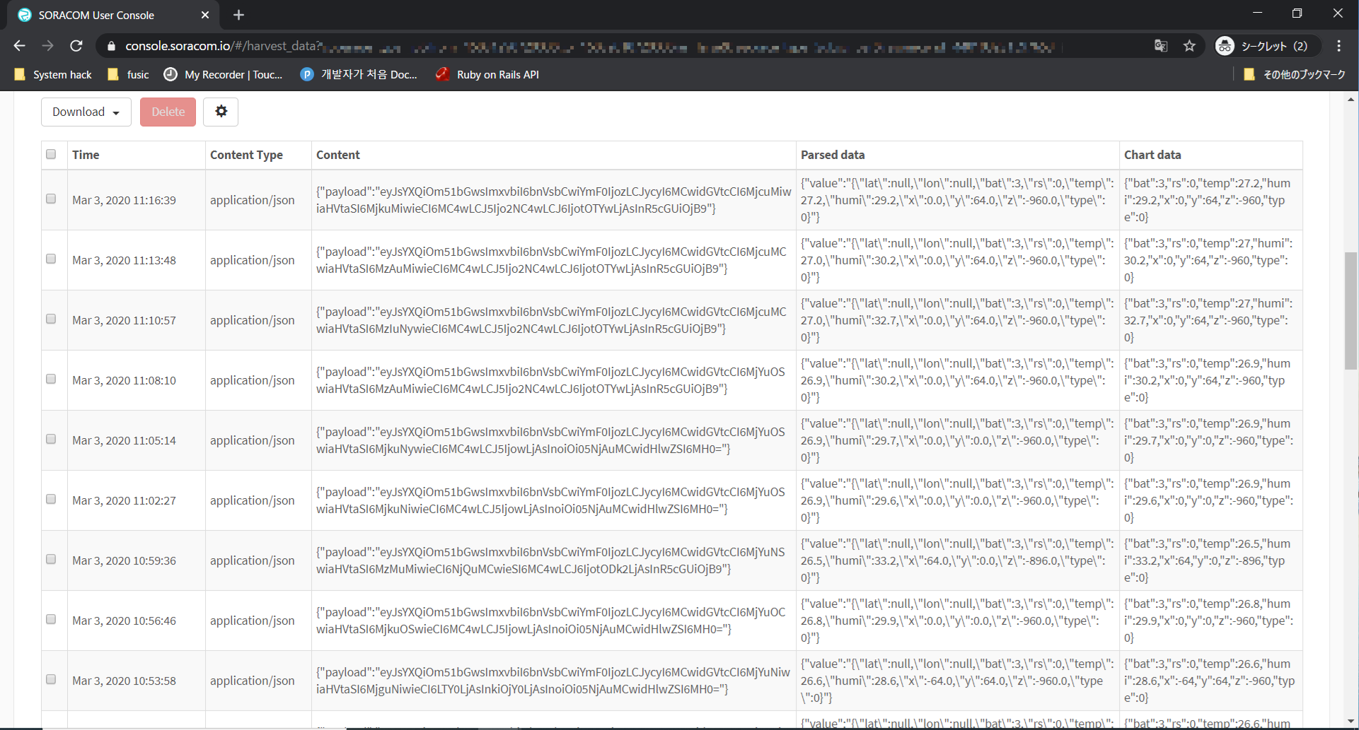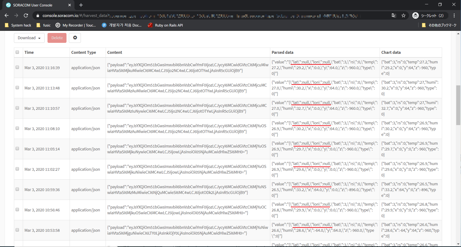 値は{"lat":33.586418,"lon":130.376307,"bat":3,"rs":0,"temp":28.4,"humi":28.7,"x":0.0,"y":64.0,"z":-1024.0,"type":0,"mock_code":"from_mock"}
