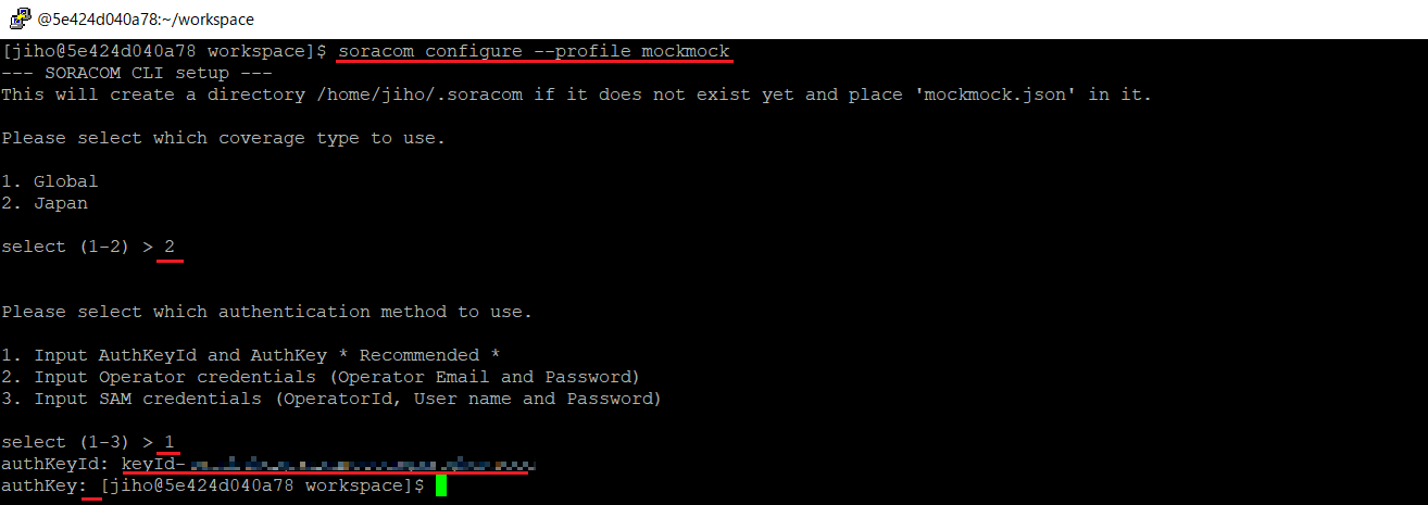[mockmock] SORACOM 認証キーを作成しますで安全なところに保管した鍵を使います