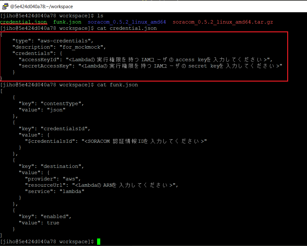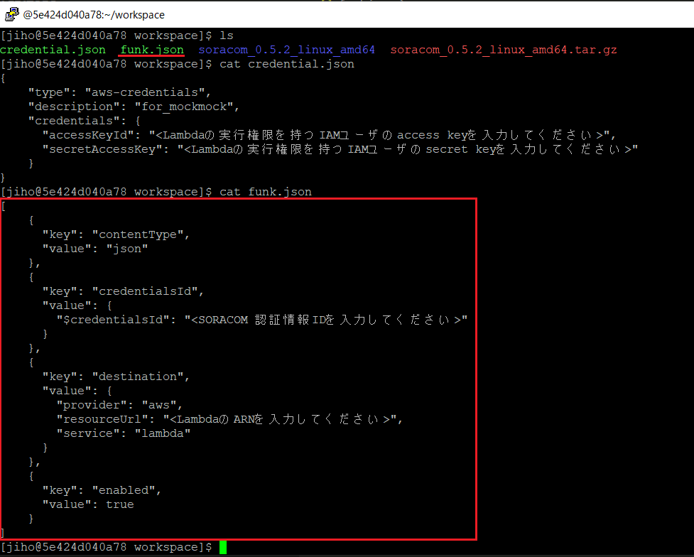 以下コマンドを実行して、SORACOM Funkの設定を登録します。