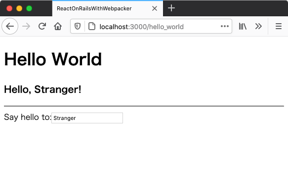 http://localhost:3000/hello_world にアクセスすると HelloWorld.jsx を含む次のような画面が表示されます。
