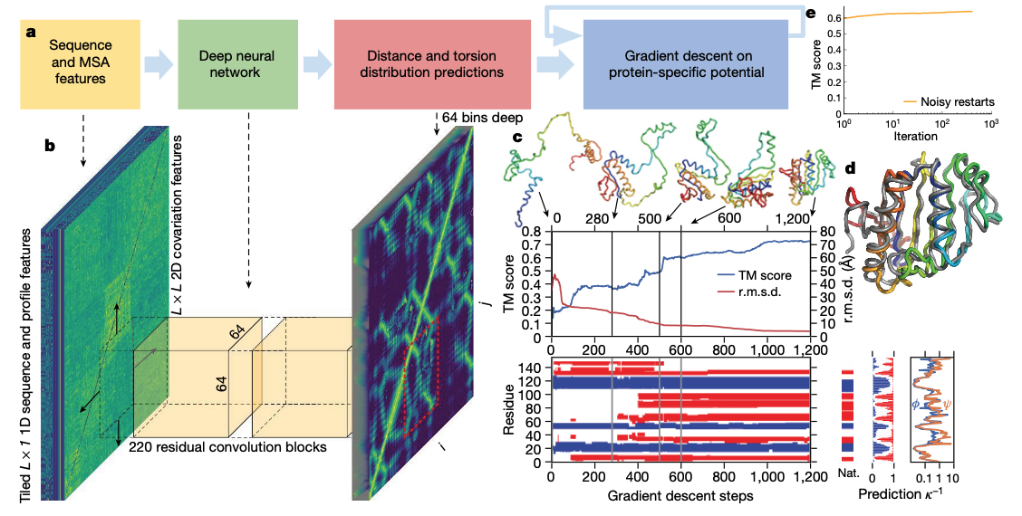 今回のAlphaFoldは生物学のドメイン知識と、機械学習の手法を巧みに織り交ぜて行われたものとしてとても感銘を受けました。 論文を読んだらみなさん気づくと思いますが、これといって機械学習的には飛び抜けて変わったことはされていません。しかし、一般的な手法を生物学のドメイン知識を使って、機械学習で扱いやすいタスクとして設計してあげるというところがすごいですね。