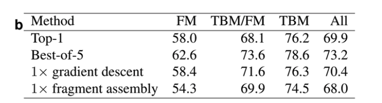 また、フラグメントアセンブリ方ではなく、勾配降下法を使った方が精度が良いことをExtended Fig5. a及びbに示されている