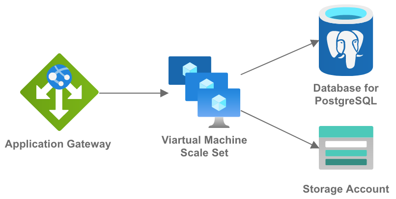 ここでは、Webシステムで良く見かける構成として、Application Gateway + Virtual Machine + Database for PostgreSQL + Storage AccountのIaCをBicepで書いてみました。
