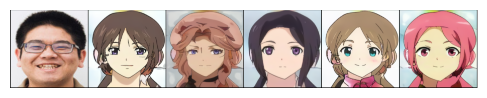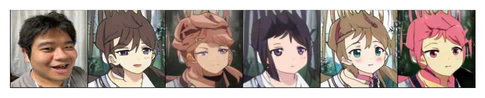- 一貫性: 同じ潜在変数の集合をを使ってアニメ画像を作成した場合、顔画像が変化した場合でもスタイルが一致している必要がある (例えば、人が顔を傾けた場合、潜在変数が変化しない限り、アニメ画像のスタイルは変化しない)