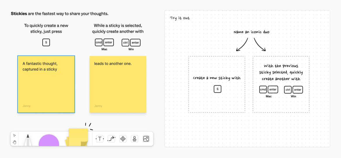 普段Miroやその他のツールをどの程度使用しているかにもよると思いますが、Miroをなんとなく趣味や業務のメモ程度で使っているレベル感の方であれば問題なく操作できると思います。業務でざくざく使いこなしている方は、ショートカットキーが少し違うなどの差異を除けば直感的に実現したい操作ができる気がします。(完全に個人の見解です)