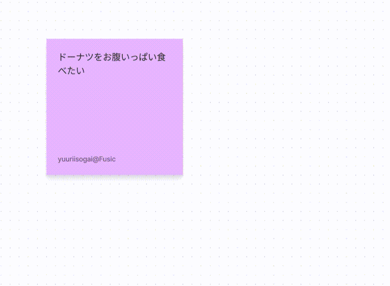 Miroでもおなじみのスティッキー機能。作成者のアカウント名が右下に印字されるのが地味に便利だなと個人的に感じました。(あと複製もショートカットでできることを知って楽!となりました)