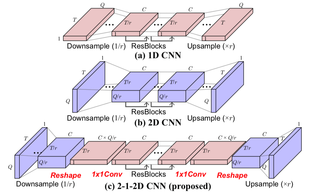 2-1-2D CNN構造(論文中Fig.2)は上図のような形になります。2D CNNでDownsample・Upsampleを行い、1D CNNで主な音声変換を行っています。この論文では、