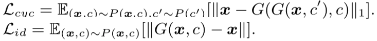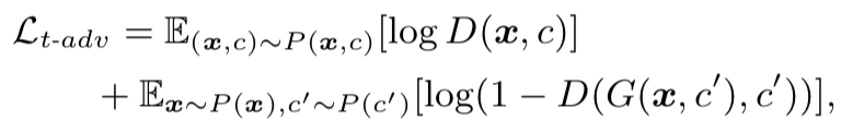 - G(x,c) : Generator, 音声特徴xをattribute cの音声特徴に変換