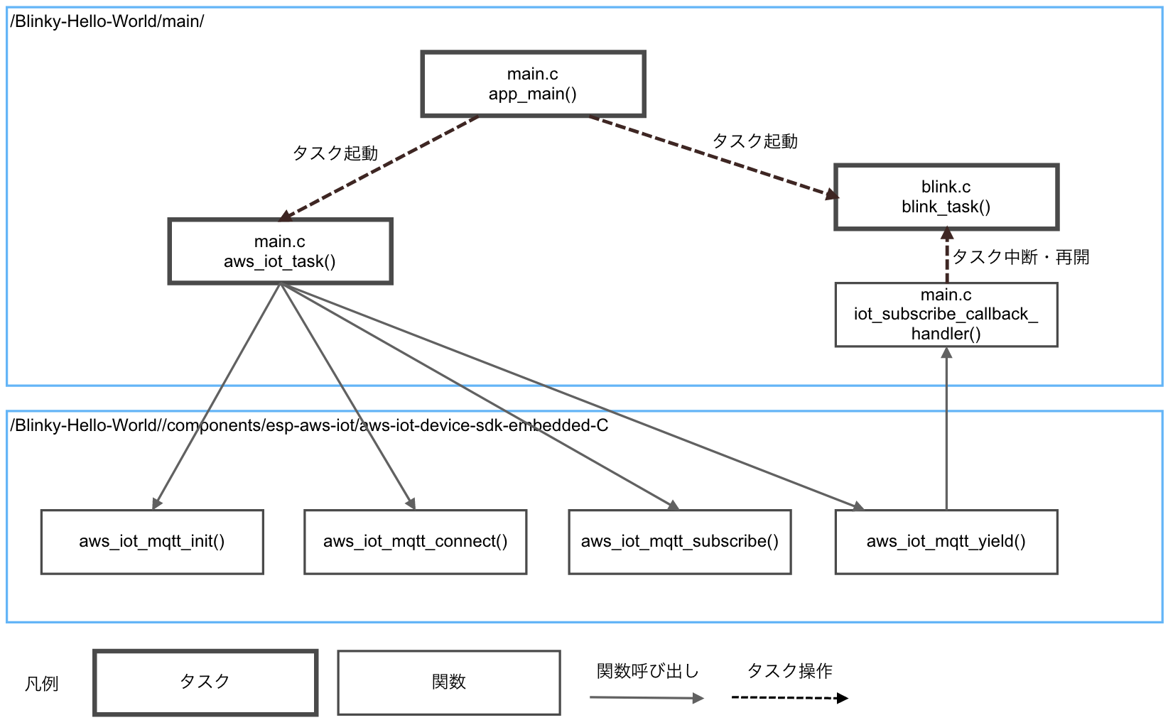 このタスクは起動直後にサスペンド(中断)しており、aws_iot_task() にて適宜レジューム(再開)されます。