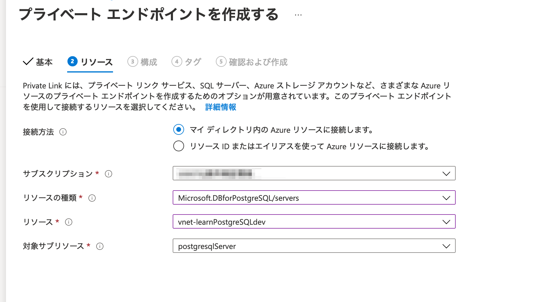 xxxxxxxx.privatelink.postgres.database.azure.comへ繋いでいることをチェックしましょう。