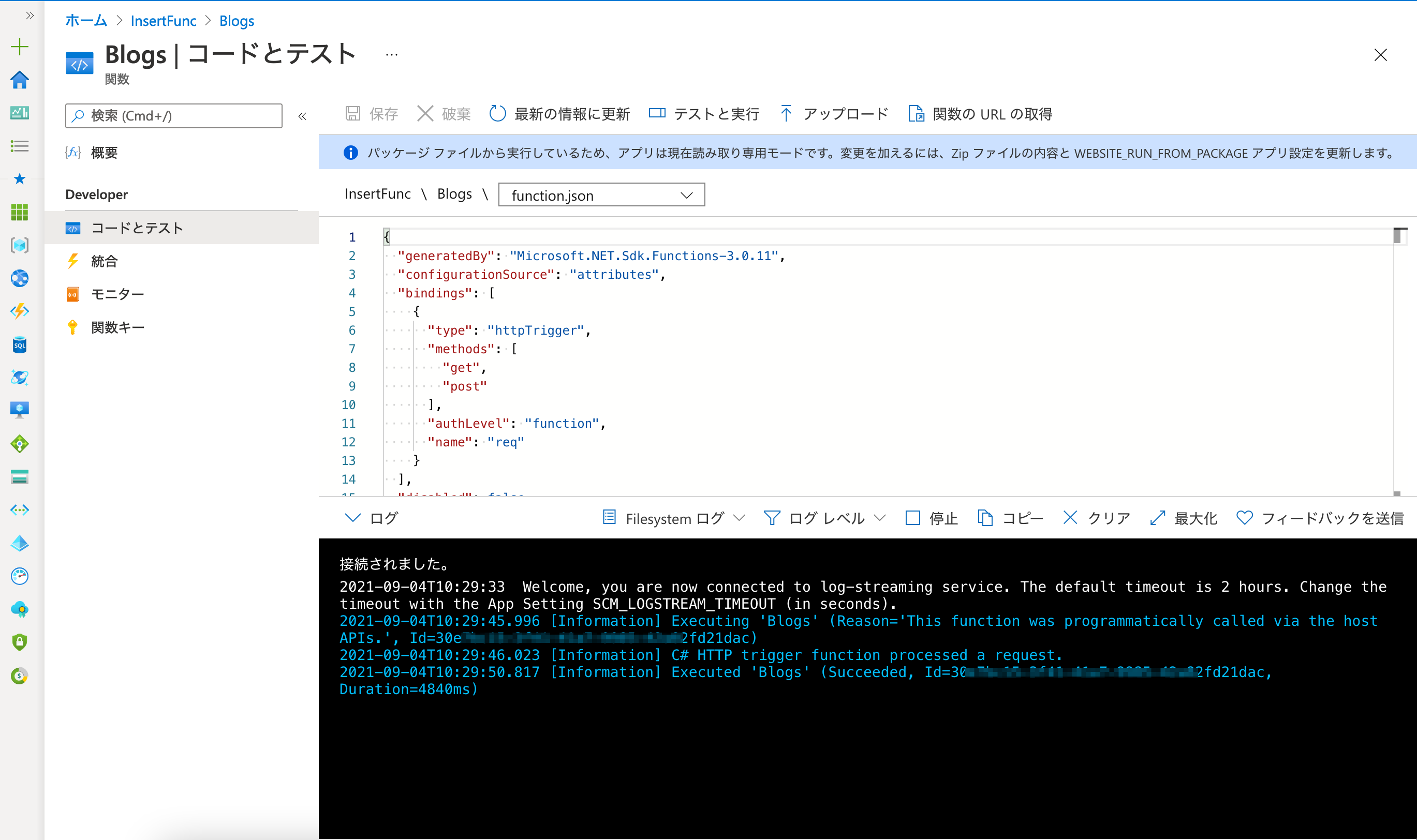 HttpTrigger で関数発火し、DB に書き込めれば OK です。