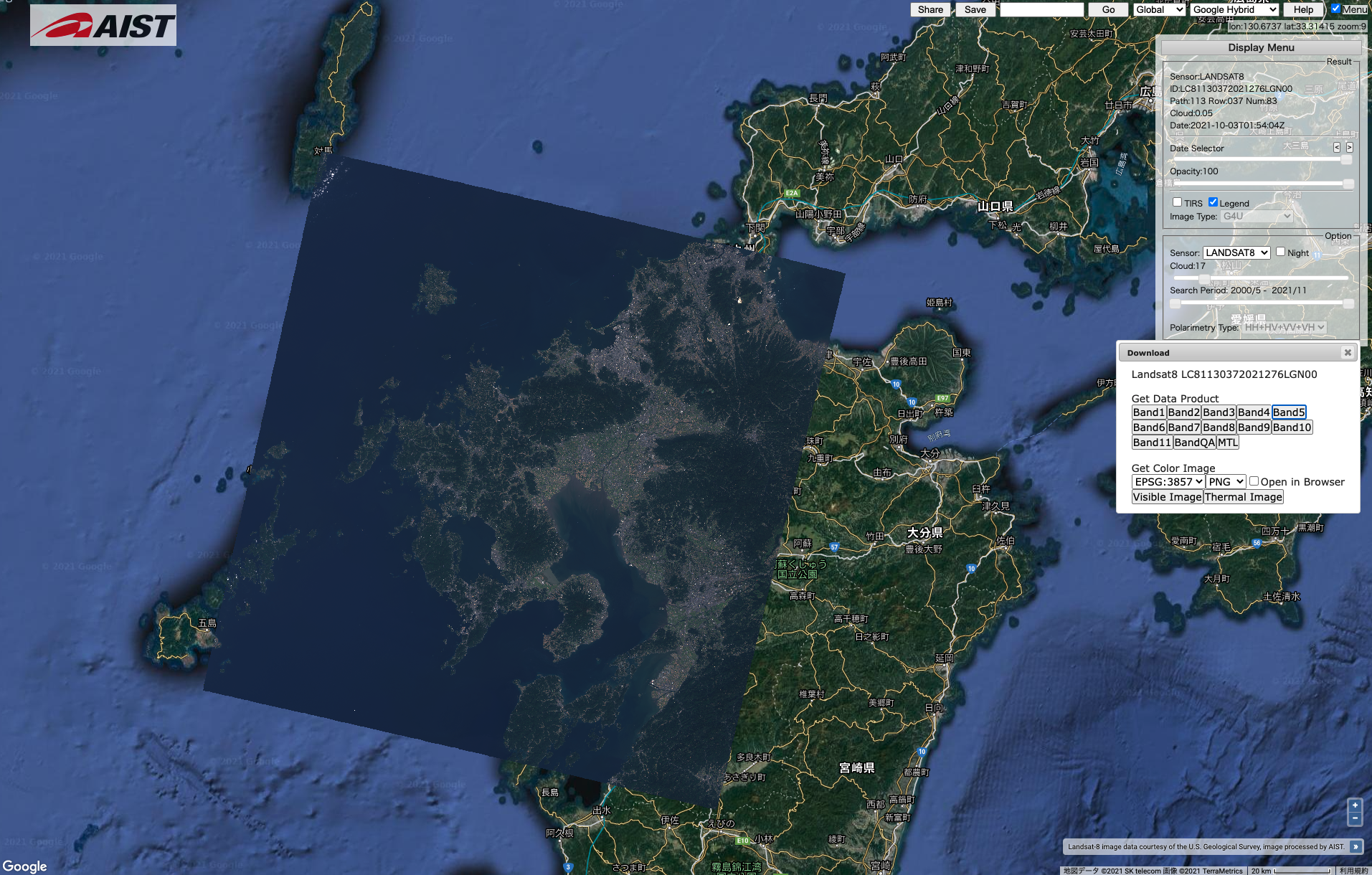 ここで、見たいエリアを選んで Band4, Band5の画像を保存しましょう。