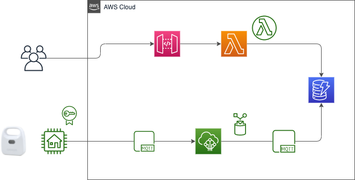 IoT Core のルールを利用して、特定のトピックに Publish したデータを DynamoDB に入れるというものです。
