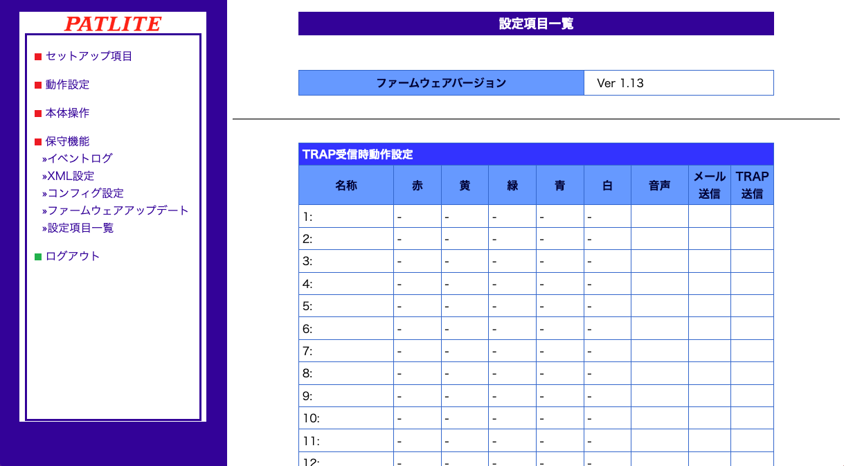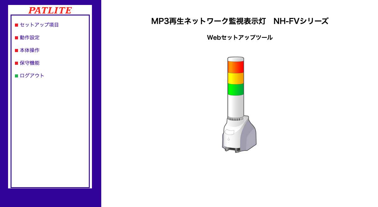 設定はブラウザでパトライトへアクセスすることで、GUIベースの設定ができるようになっています。
