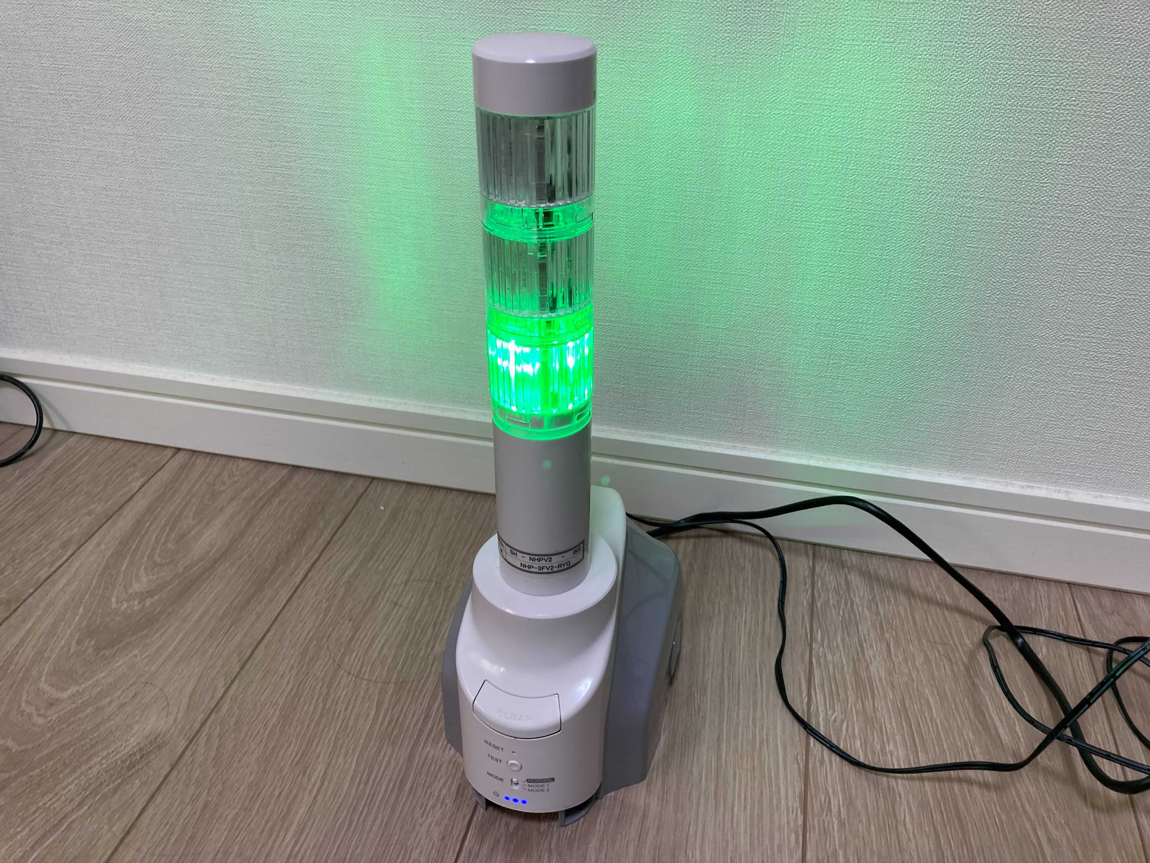 本体のCLEARボタンを押すと、通常状態に戻ります。(通常状態では緑点灯とするよう設定しています)