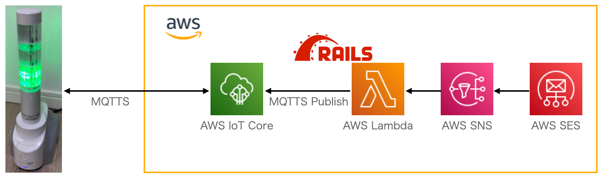 今回はRuby on Railsで構築したWebシステムからからAWS SDK for Ruby v3を利用して、パトライトを点灯しました。