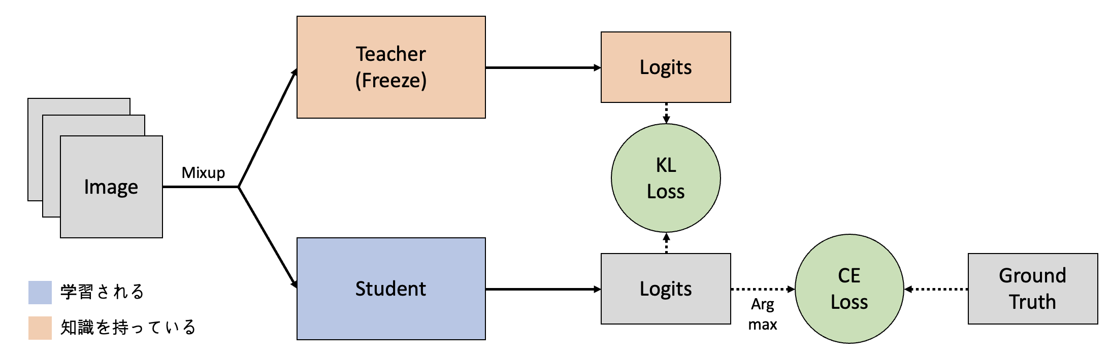 特徴としては、Pre-trainされたTeacherモデルが要るので「2Stage方式」になることです。