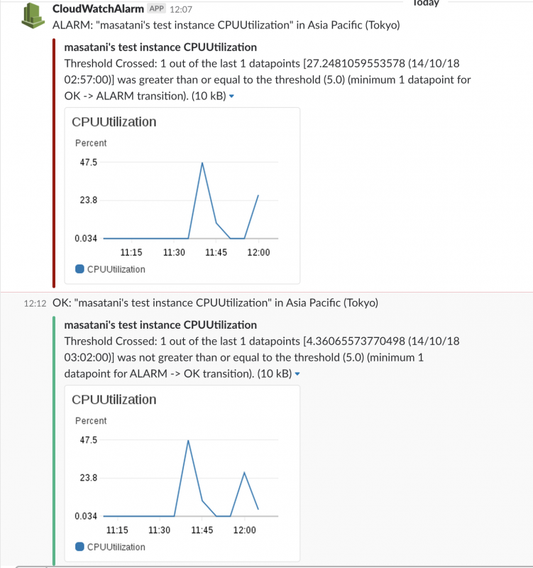 今回はCloudWatchAlarmの内容を、画像付きでSlack通知してみました。