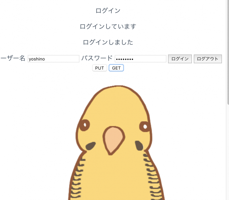 では次にS3の同じ場所にbird.pngという画像ファイルを設置し、状態で、GETボタンを押すと