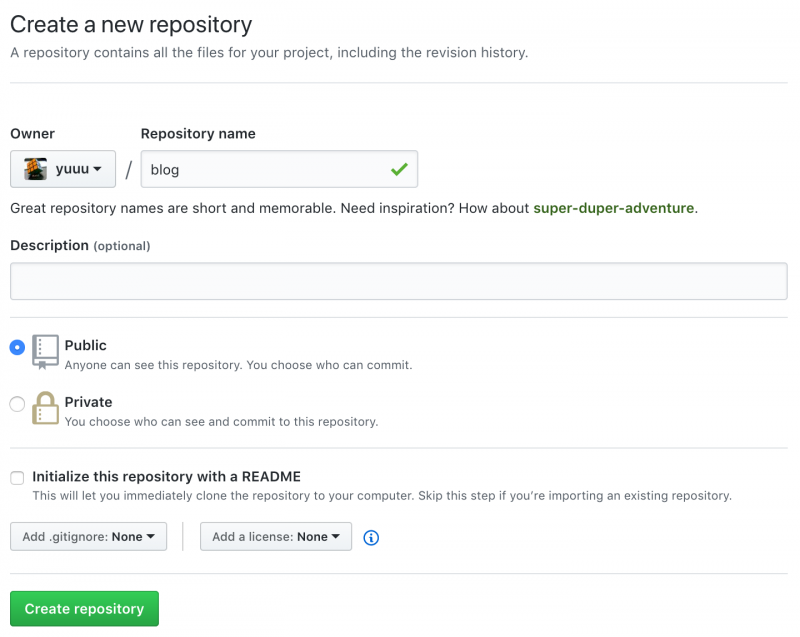 $ git remote add origin git@github.com:yuuu/blog.git
