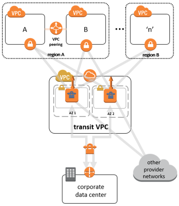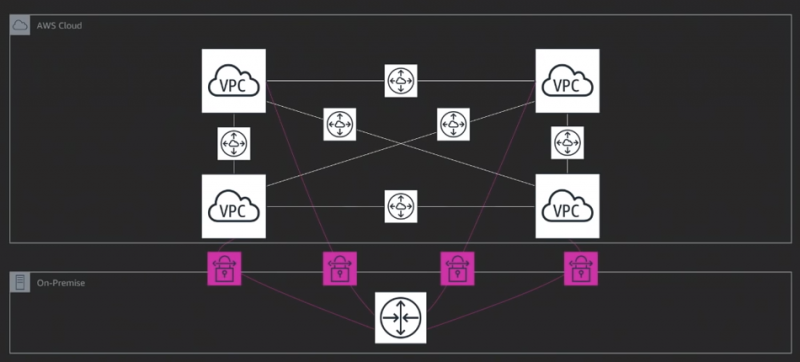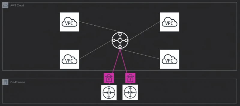 非常に簡単に言うと、複数の VPC – VPC間, オンプレミス – VPC などの複数ネットワーク間が相互に通信するトランジット環境を構築できるサービスです。