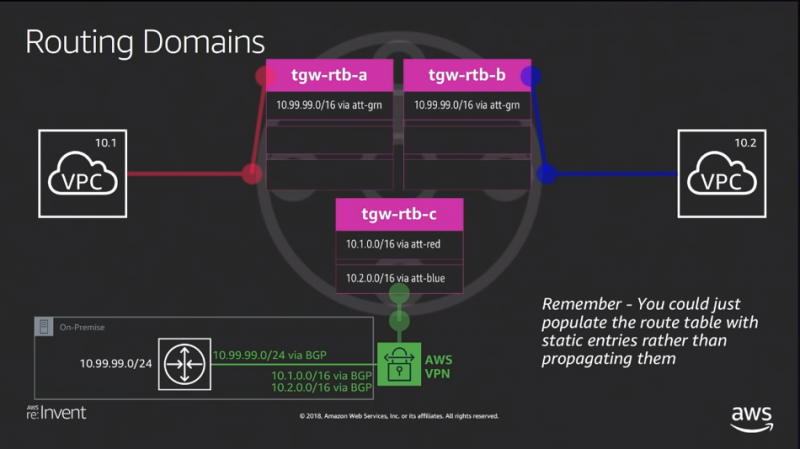 各アタッチメントごとにRoute Tableをもつ、疎通可能なルートをそれぞれ制御可能
