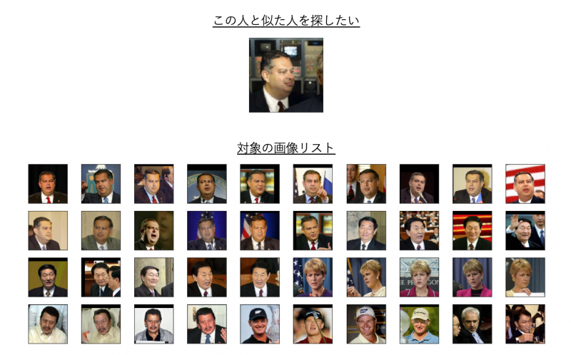 このAPIでは対象の画像リストの中から、探したい顔と似ている画像候補を提示してくれます。